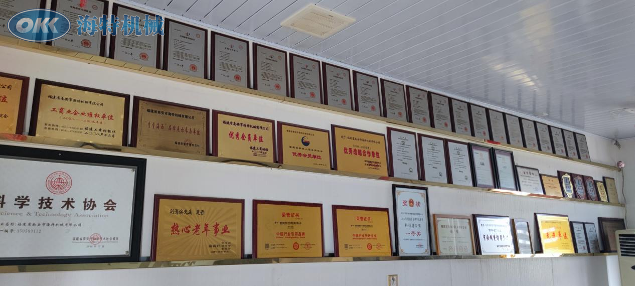 至今,海特機(jī)械已獲得10項(xiàng)國家發(fā)明專利和70項(xiàng)國家實(shí)用新型專利,設(shè)備已在多個(gè)國家使用,深受用戶肯定。并且常年受到各級(jí)政府的表彰和支持:2019年獲得福建省科技小巨人領(lǐng)軍企業(yè)、2019年知識(shí)產(chǎn)權(quán)管理體系認(rèn)證、2020年獲得守合同重信用企業(yè)、2021年獲得中國行業(yè)先進(jìn)企業(yè)、中國行業(yè)引領(lǐng)品牌等榮譽(yù)稱號(hào)。